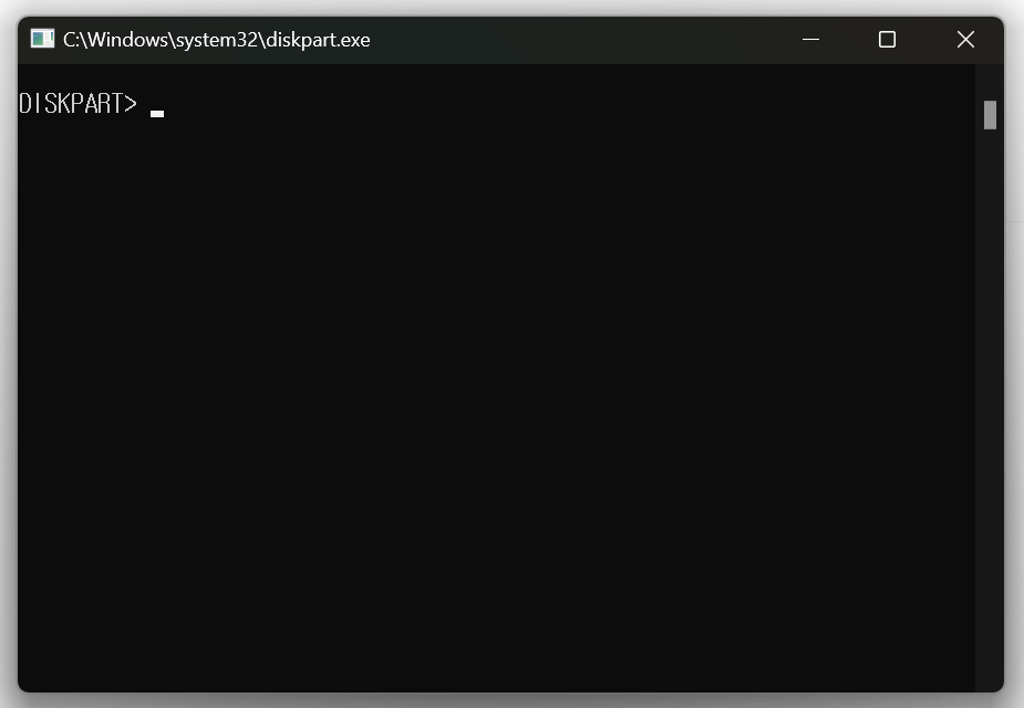 디스크가 장착된 iODD를 USB포트에 연결 후 cmd나 PowerShell에서 diskpart 명령을 입력하여 DiskPart를 실행한다.