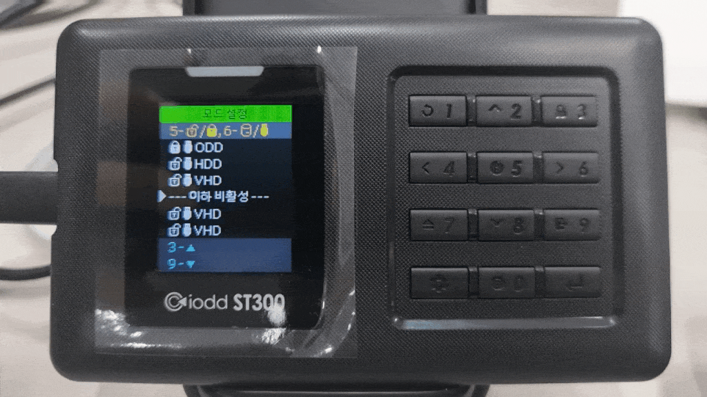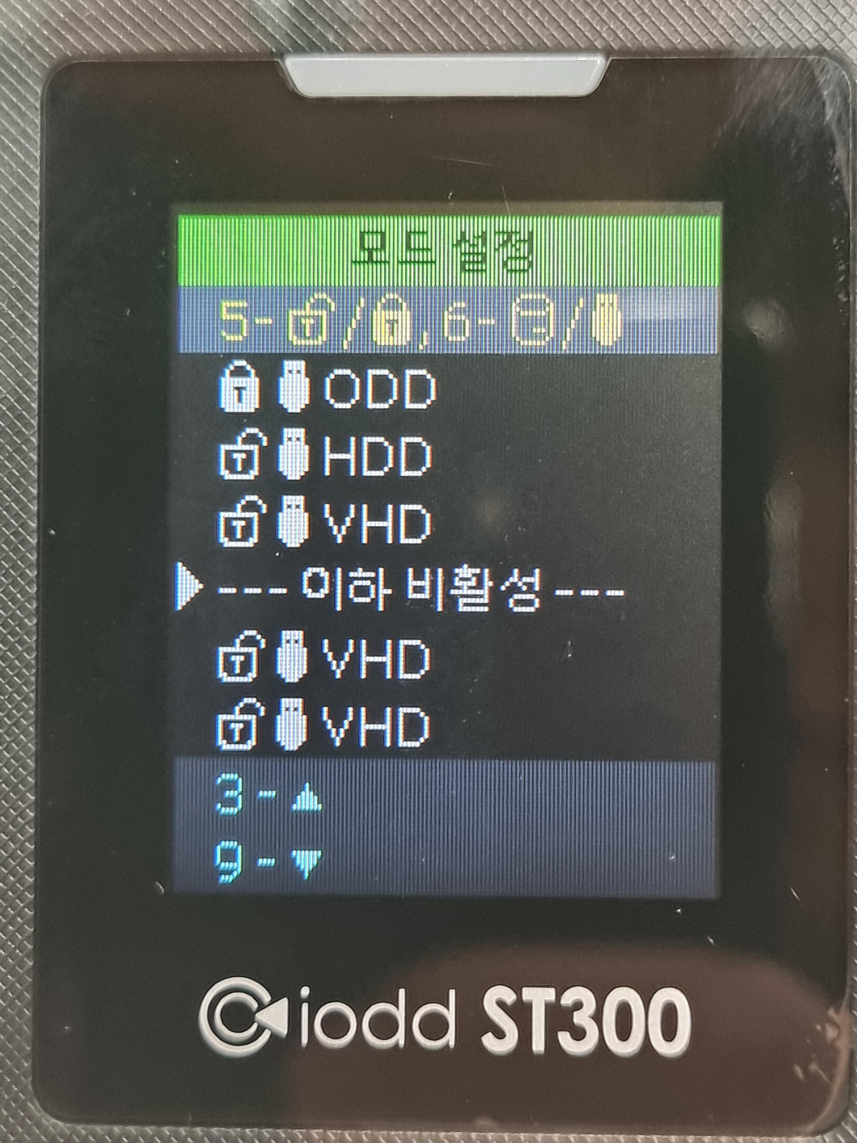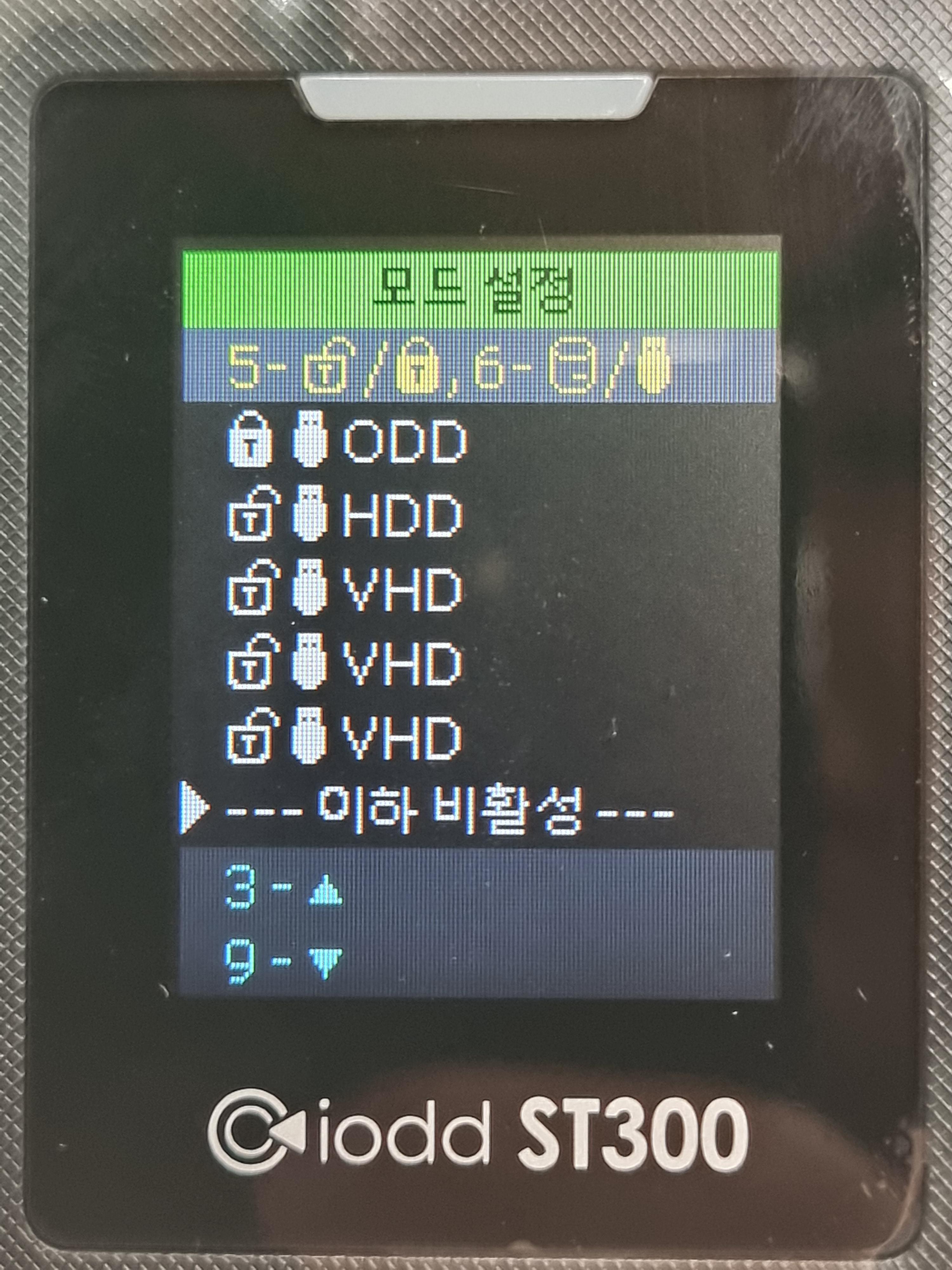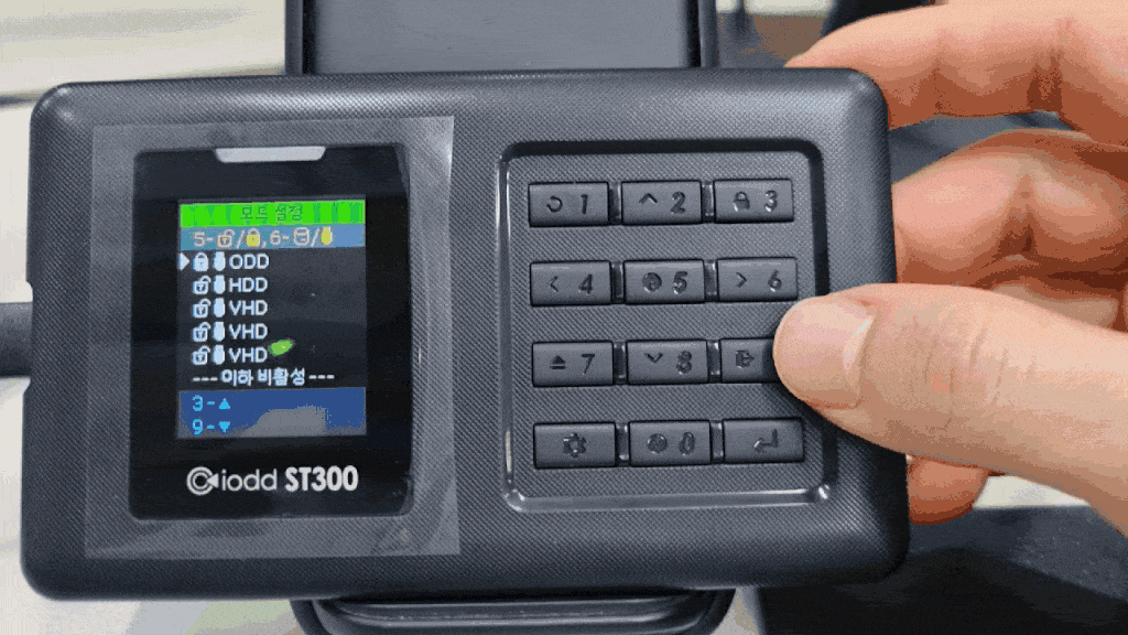 우측에 있는 키패드를 사용하여 iODD의 기능들을 이용하게 된다.