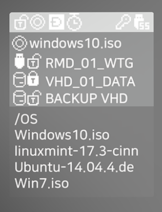 인클로저 안에 장착된 HDD 혹은 SSD내의 파일을 확인하고 .ISO 형식의 파일은 가상 ODD로, .VHD 형식의 팡닐은 가상 하드디스크로 사용할 수 있다.