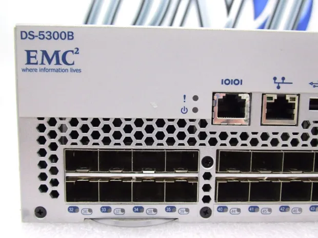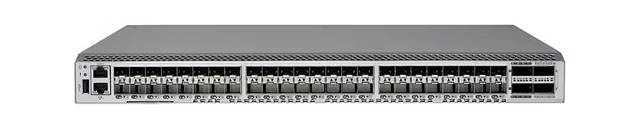 SAN 스위치는 FC(Fiber Channel) 광케이블을 사용해 광신호로 데이터를 주고 받는데, 실제 장비에는 디지털 신호가 필요하므로 저 포트들에는 광케이블을 직접 연결하지 않고 SFP(Small Form-factor Pluggable)라는 핫 플러그 방식의 일종의 광-데이터 변환 잭을 꼽고 그 플러그에 FC 케이블을 연결한다.