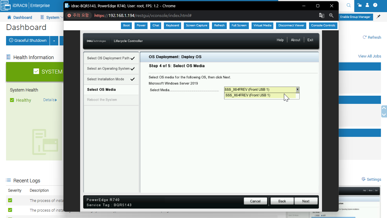 iDRAC에서는 Virtual Media라는 가상의 디스크를 생성하여 서버가 부팅 디스크로 인식하게 할 수 있다.