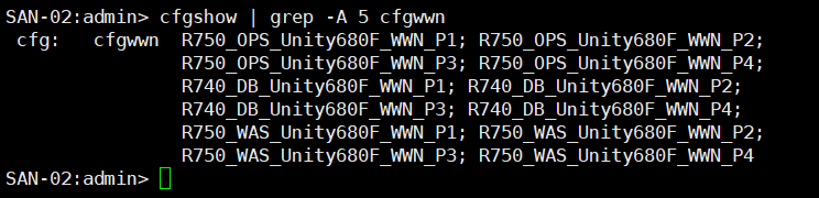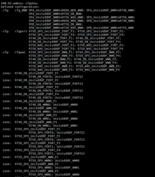 cfgcreate "cfgwwn", "R750_OPS_Unity680F_WWN_P1; R750_OPS_Unity680F_WWN_P2; R750_OPS_Unity680F_WWN_P3; R750_OPS_Unity680F_WWN_P4; R740_DB_Unity680F_WWN_P1; R740_DB_Unity680F_WWN_P2; R740_DB_Unity680F_WWN_P3; R740_DB_Unity680F_WWN_P4; R750_WAS_Unity680F_WWN_P1; R750_WAS_Unity680F_WWN_P2; R750_WAS_Unity680F_WWN_P3; R750_WAS_Unity680F_WWN_P4"