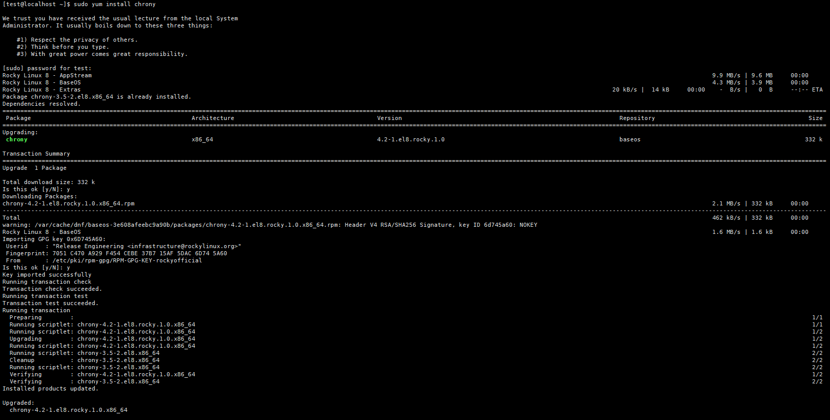 chrony 패키지를 설치해 준다. 현재 리눅스 환경에서 가장 대중적으로 사용되는 NTP 패키지이다.