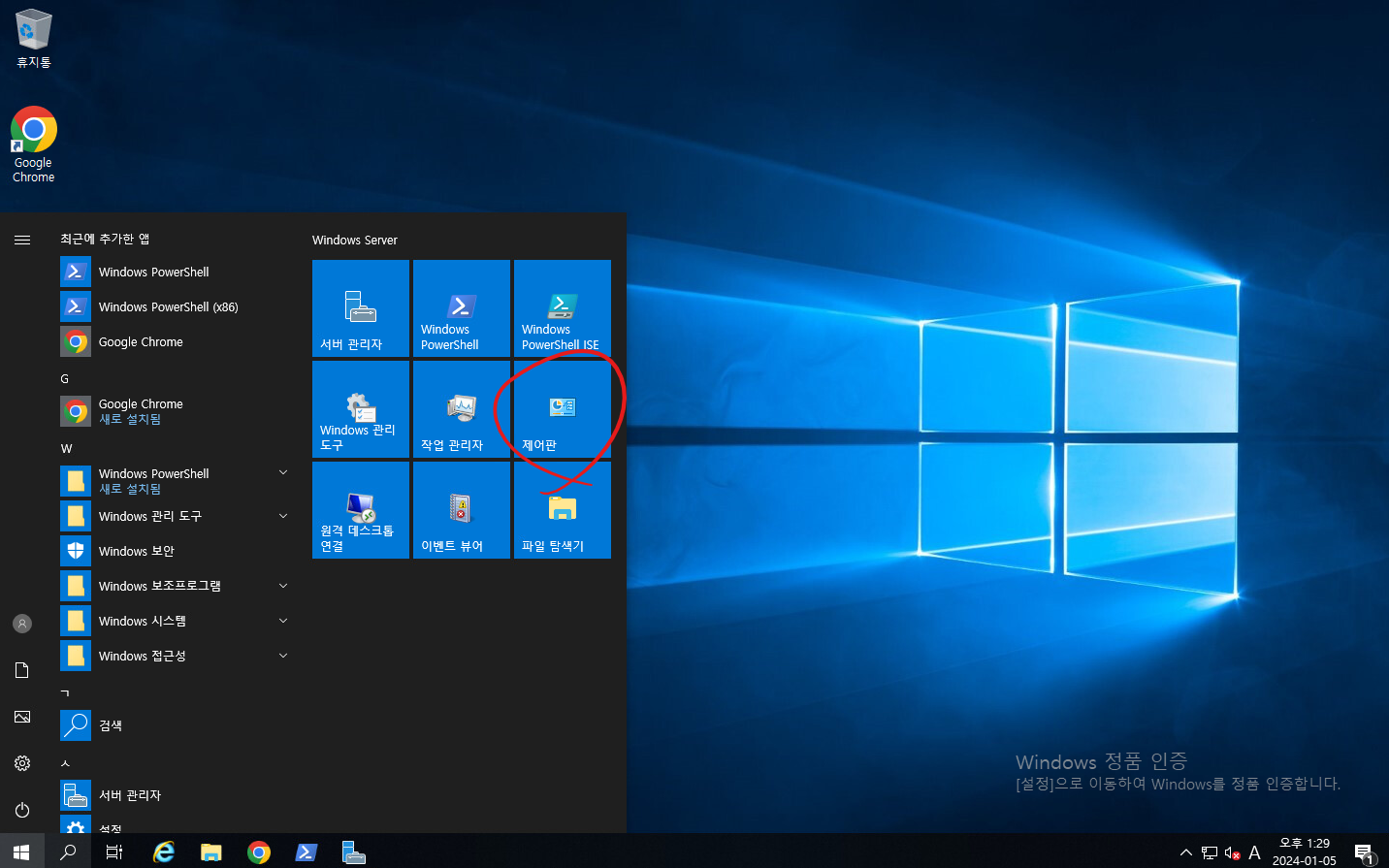 제어판과 서버 관리자에서 직관적으로 설정이 가능하다.