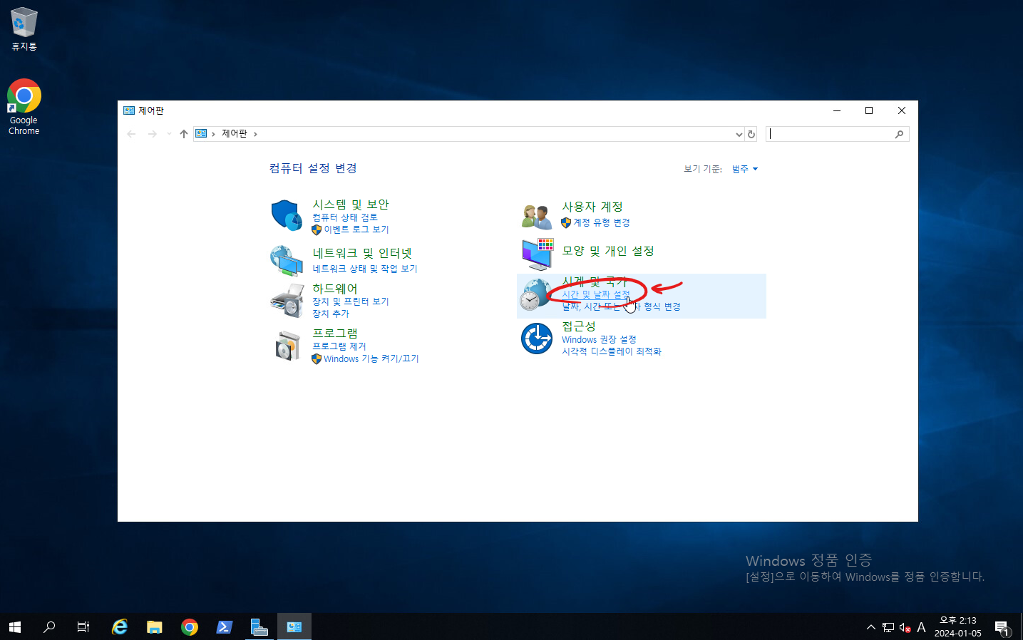 '시계 및 국가' 아래의 '시간 및 날짜 설정'을 클릭한다.