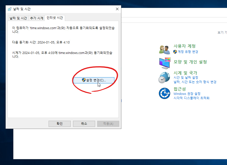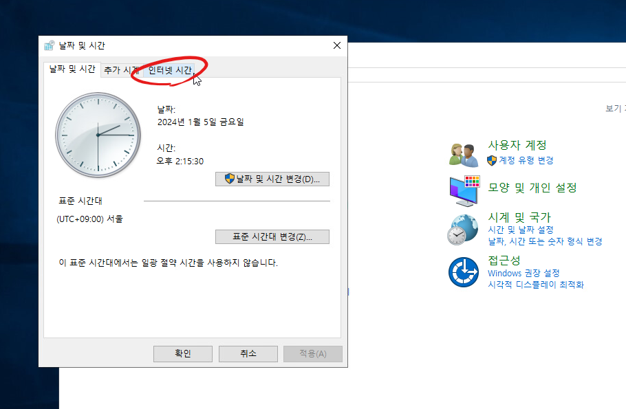 윈도우는 NTP서버로 사용하는 경우는 거의 없지만 클라이언트로서 NTP 시간 동기화 설정 해주는 과정은 리눅스보다 훨씬 간단하다.