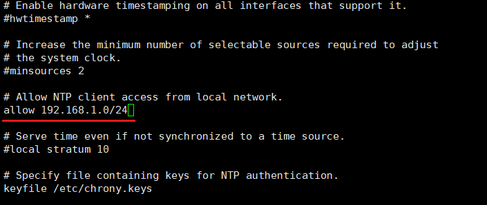 /etc/chrony.conf에 chrony의 설정값이 저장된다. 해당 파일에서 시간의 소스와 접근 권한 등을 설정해줄 수 있다.