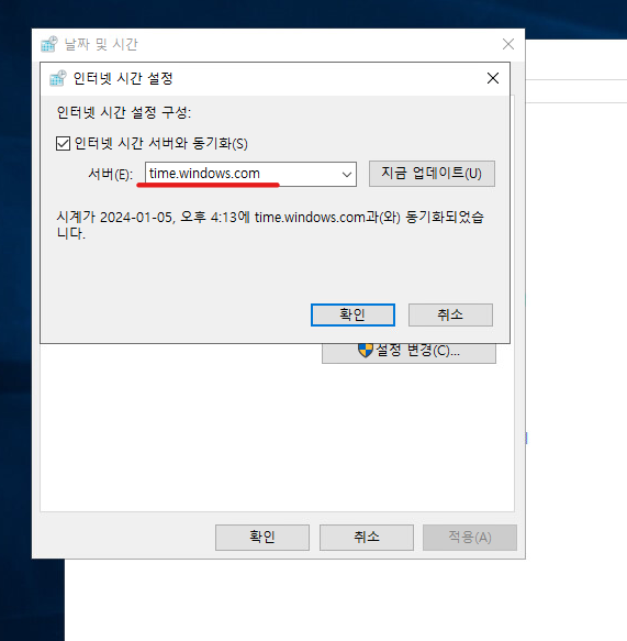 리눅스처럼 별도의 NTP 툴을 설치할 필요가 없고, 윈도우 NTP 기능이 OS 안에 내장되어있다.